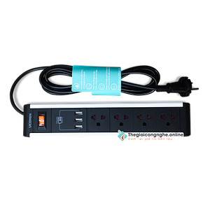 Ổ cắm điện chống quá tải 4 lỗ cắm (Đen)